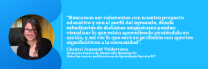 Tres de los documentos presentados en el texto tienen el sello de Aprendizaje Servicio UC, por lo que, permite “sistematizar experiencias en la Universidad, genera evidencias de que esta metodología aporta integralmente a la formación de las personas y que también aporta a nuevas referencias bibliográficas latinoamericanas”, dice Chantal Jouannet, directora del Centro de Desarrollo Docente de la Universidad Católica (CDDoc UC).