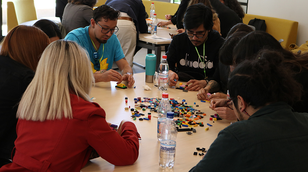 Avanzada la tarde y luego de una pausa de conversación, se llevó a cabo un espacio de construcción colectiva con LEGO® Serious Play® en donde los presentes soñaron con la sala de clases del futuro, la que construyeron colaborativamente a partir de este tradicional juego de bloques.