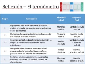 Un aspecto innovador destacado en este curso fue la introducción del “Termómetro Estadístico”. Esta herramienta reflexiva permitió a estudiantes cuestionar afirmaciones desafiantes en una escala termométrica, fusionando la evaluación subjetiva con un componente estadístico. En las presentaciones finales, los estudiantes aplicaron este termómetro a afirmaciones controversiales, experimentando cambios notables en sus evaluaciones, esta vez respaldadas por evidencia estadística y p-values.