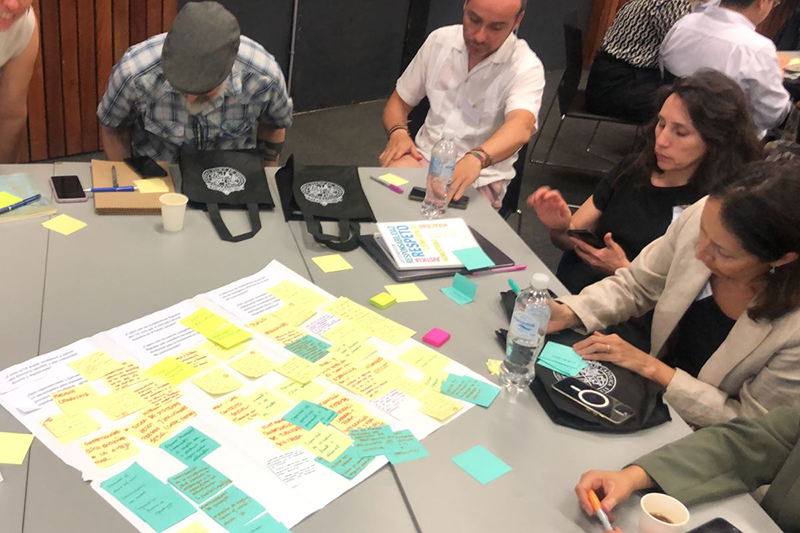 Posteriormente se dio paso a un espacio de trabajo en cada mesa que abordó tres grandes temas: currículum y competencias digitales; docencia y proceso de enseñanza aprendizaje; y ética e integridad académica. A partir de la experiencia personal y disciplinar de cada uno de los presentes, expusieron ideas y propuestas de pasos a seguir para bordar el cómo y cuándo utilizar esta tecnología que llegó para quedarse.