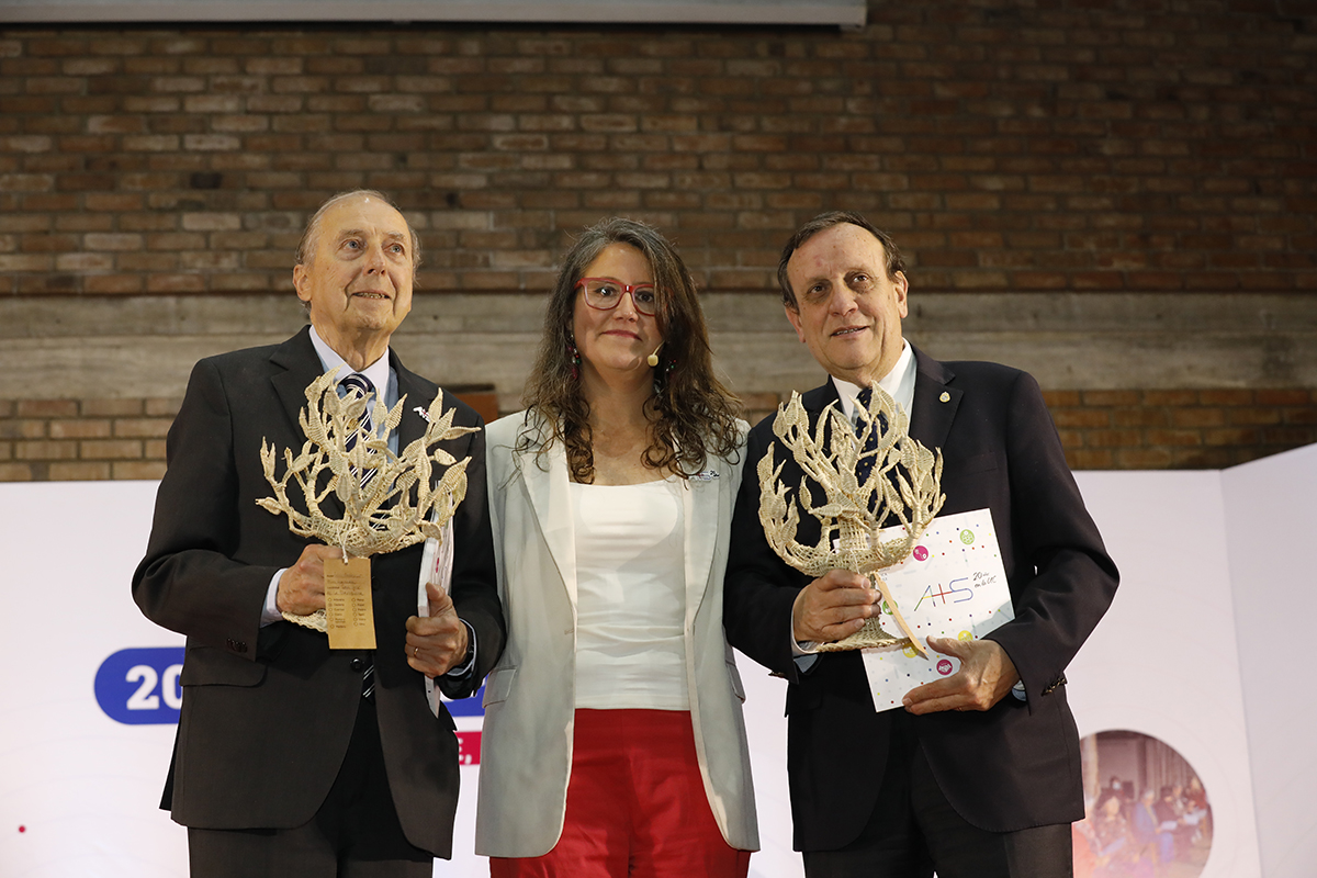 Entregó un reconocimiento a las autoridades que hicieron posible que A+S en la UC sea hoy una realidad: “El rector emérito Pedro Pablo Rosso, quien permitió comenzar con la metodología hace 20 años, siendo receptivo a ideas de un grupo de docentes que quiso impulsar el A+S en la UC e impulsarlo de manera institucional. Junto a él, nuestro actual rector, Ignacio Sánchez, quien ha hecho posible la sostenibilidad del Programa A+S y le ha otorgado visibilidad y posicionamiento, incluso él presentando en otros países la metodología. Lo que hoy se traduce en ser referentes del Aprendizaje Servicio en Latinoamérica y el Caribe”, dijo la directora del CDDoc, mientras les entregaba un significativo reconocimiento: un árbol boqui, fabricado por un matrimonio lafkenche que fue parte de los socios comunitarios que han trabajado de la mano de la UC bajo esta metodología, a través de un curso A+S de la Escuela de Diseño UC.