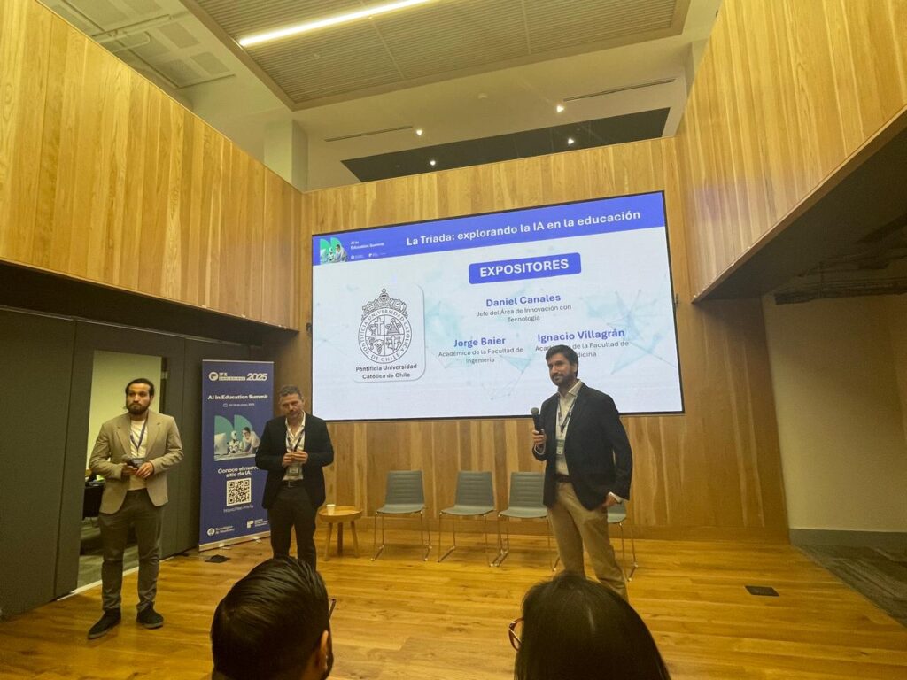 Además, Villagrán destacó el enfoque de la Universidad del uso de inteligencia artificial. En relación a esto, agregó que pudo conocer cómo la inteligencia artificial se integra no solo a nivel de los cursos, sino también a nivel institucional, con iniciativas que promueven la formación docente y entregan herramientas para facilitar su adopción. “Vimos ejemplos aplicados al desarrollo de material audiovisual, el mejoramiento de la retroalimentación a los estudiantes, sistemas institucionales de elaboración de instrumentos de evaluación, y el uso de learning analytics para apoyar la toma de decisiones docentes”.