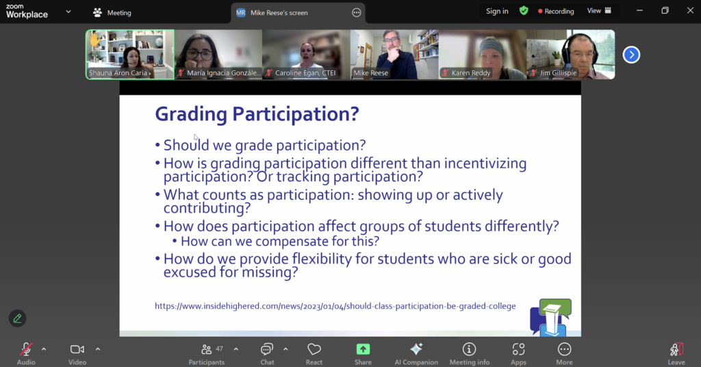 Desde el Centro de Desarrollo Docente agradecemos a Michael Reese, director del CTEI, y a Caroline Egan, directora del Programa de la Academia de Docencia la Universidad Johns Hopkins, por la invitación extendida, desde 2024, a participar en el workshop “Best Practices in University Teaching.” Esta colaboración ha fortalecido los vínculos académicos internacionales entre centros y ha contribuido de manera significativa al intercambio de conocimientos y a la incorporación de prácticas pedagógicas innovadoras en el CDDoc.