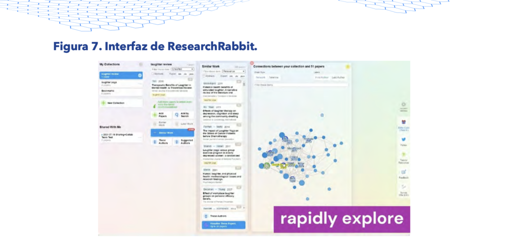 El texto destaca que Research Rabbit “sirve tanto a las facultades como a los investigadores al simplificar la búsqueda y organización de la literatura científica. Esta plataforma utiliza inteligencia artificial para ofrecer recomendaciones de artículos personalizadas, sincronizarse con herramientas como Zotero (un gestor de referencias bibliográficas de código abierto desarrollado por la Universidad George Mason) y proporcionar visualizaciones interactivas que revelan relaciones entre autores y áreas de investigación. Al hacerlo, ahorra a los investigadores un tiempo significativo en la revisión de literatura, permitiéndoles construir colecciones organizadas y enfocarse en generar ideas impactantes”.