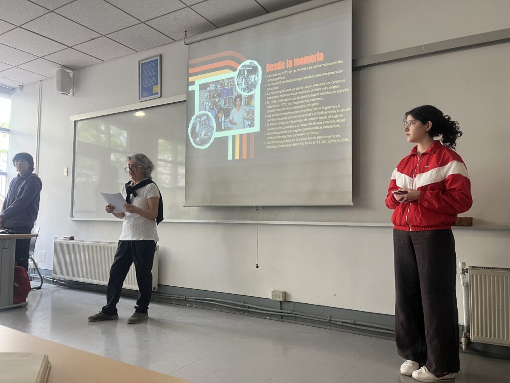 Como parte del curso de formación general “Arte, cultura y política en la Edad de Oro del siglo XX”, y bajo el eje estratégico de Compromiso Público, el profesor César Albornoz junto a los y las estudiantes UC exploraron la historia contemporánea mundial a partir de sus manifestaciones artísticas, culturales, políticas y sociales, abordando los principales procesos de la llamada “Edad de Oro” (1945-1973). A través del análisis de películas, música, obras visuales y testimonios de personas mayores, se promovió una comprensión crítica de los grandes hitos políticos y culturales de la segunda mitad del siglo XX, conectando la historia con los desafíos del presente.