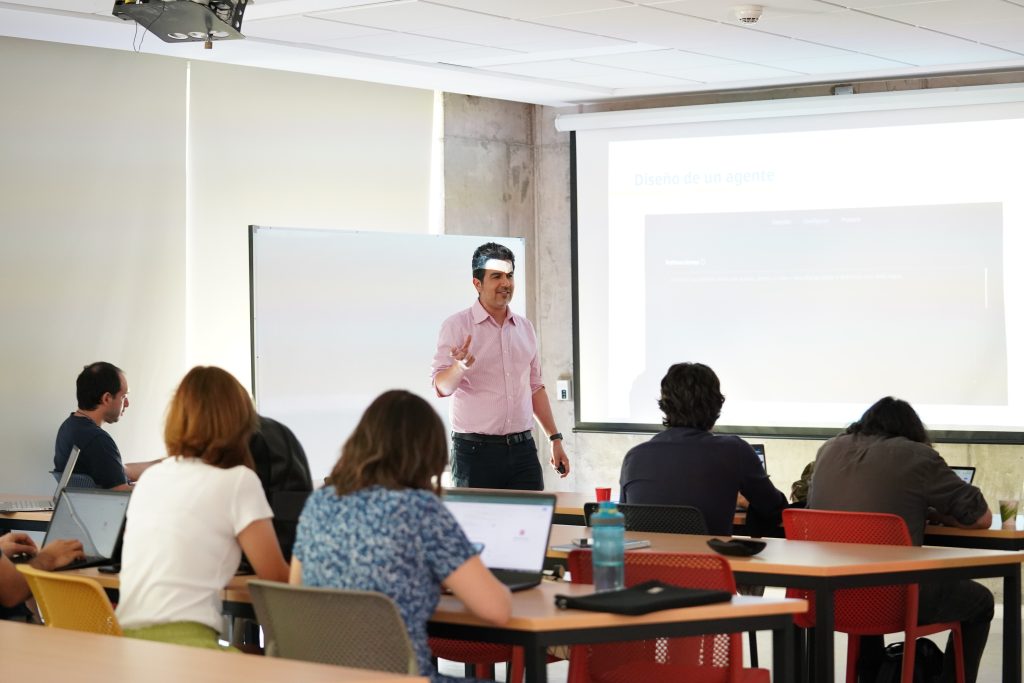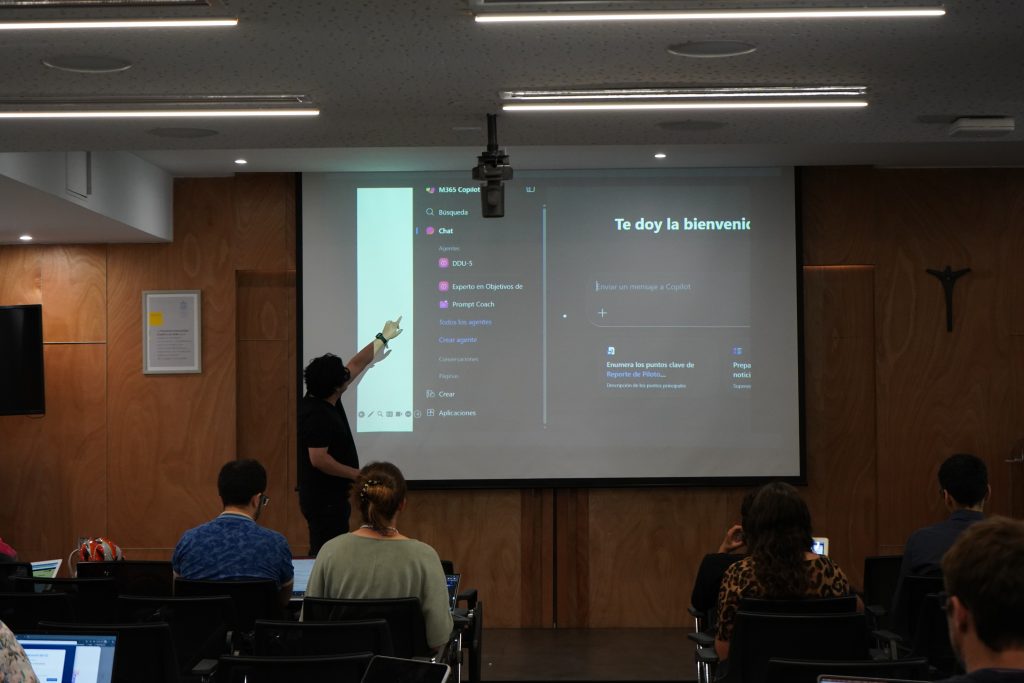 Según explicó Daniel Canales, jefe del área de Innovación con Tecnología del CDDoc y uno de los facilitadores del curso 5, “en la primera sesión reconocimos todas las tecnologías que la universidad dispone para potenciar la docencia. Luego, avanzamos hacia preguntas más complejas, como, por ejemplo, cómo integrar la inteligencia artificial en los sistemas evaluativos. En la última sesión, las y los docentes diseñaron su propio chatbot educativo utilizando Copilot, configurando por primera vez un System Prompt para un chatbot pensado específicamente para sus cursos y estudiantes”.