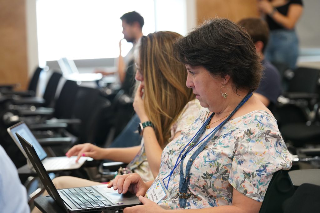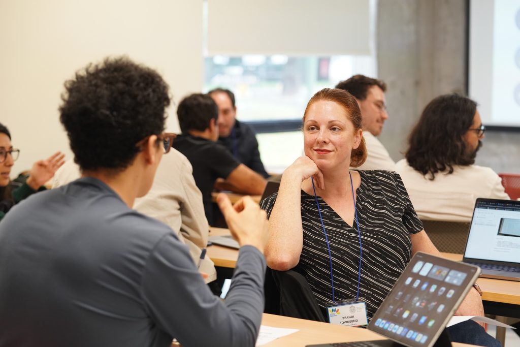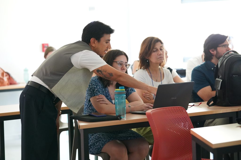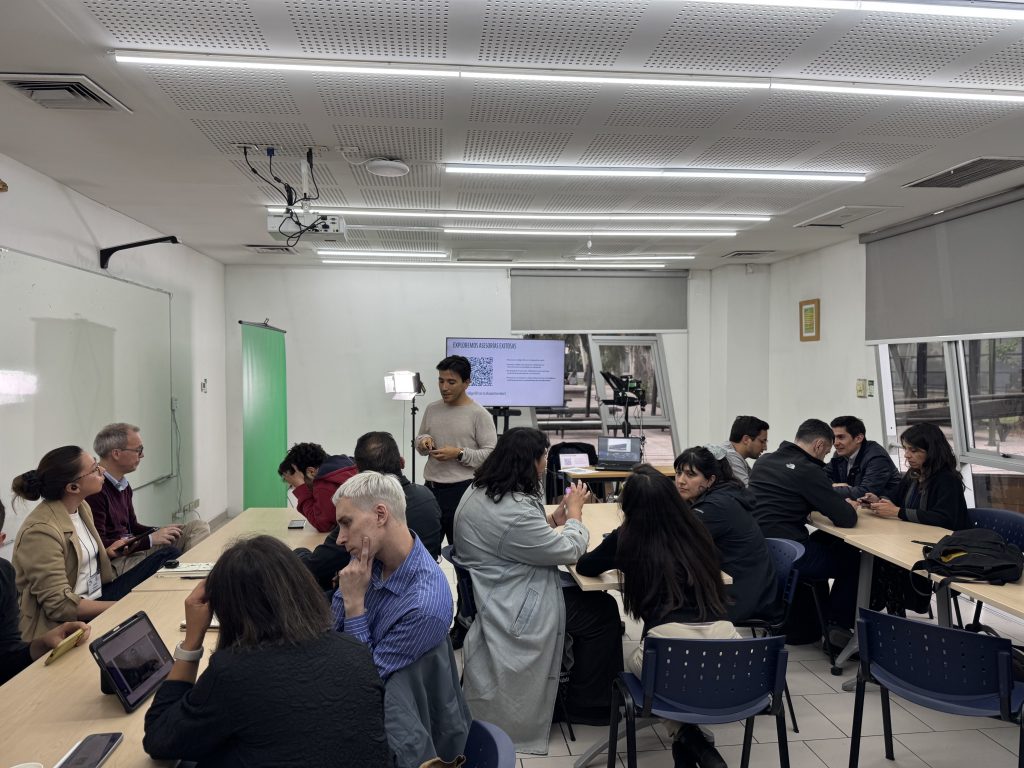 El curso se desarrolló en un formato B-learning, que combinó trabajo asincrónico en la plataforma Canvas –donde las y los docentes revisaron diversas herramientas tecnológicas y de inteligencia artificial aplicadas a la docencia en educación superior – con tres sesiones presenciales.