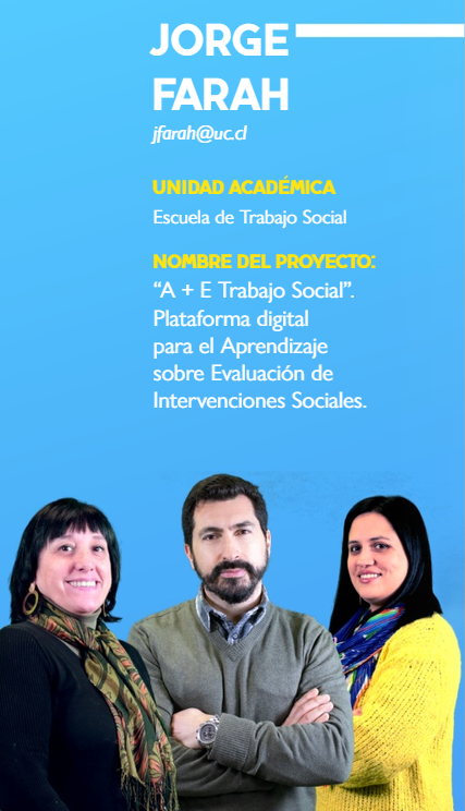 Este proyecto fue coordinado por el docente Jorge Farah junto a sus colaboradoras Paula Miranda y Alejandra Inostroza y desarrollado para la Escuela de Trabajo Social, de la Facultad de Ciencias Sociales.
