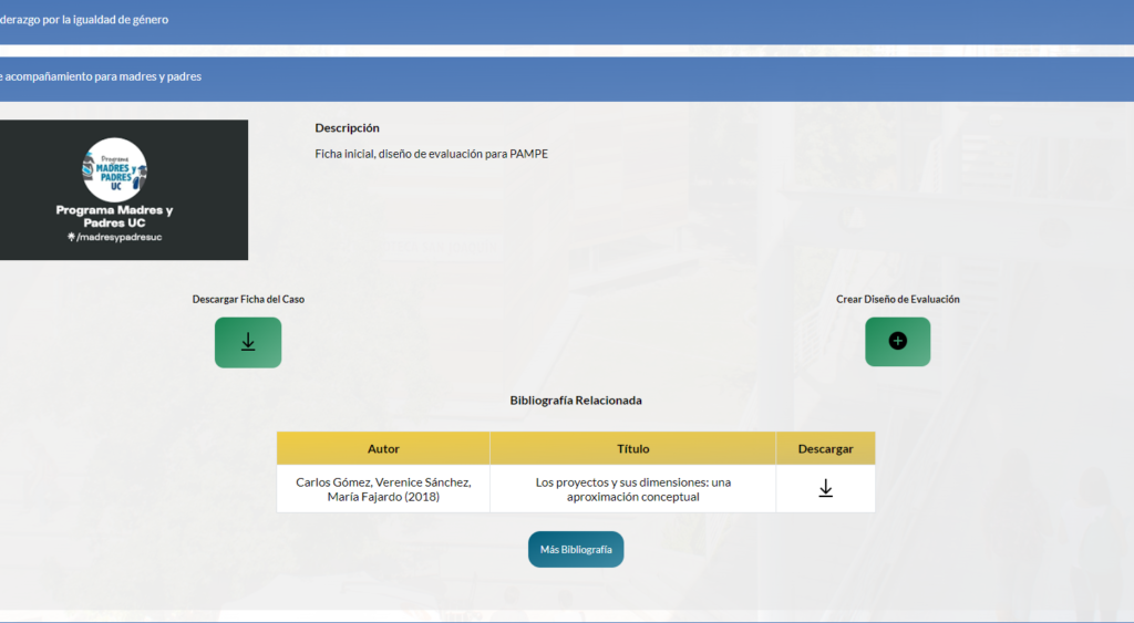 En diseños de evaluación existen materiales que han hecho otros participantes, los cuales sirven para establecer una comparación/referencia de evaluaciones de los distintos casos. Además, los estudiantes pueden publicar sus propios diseños de evaluación, para promover la socialización de estos.