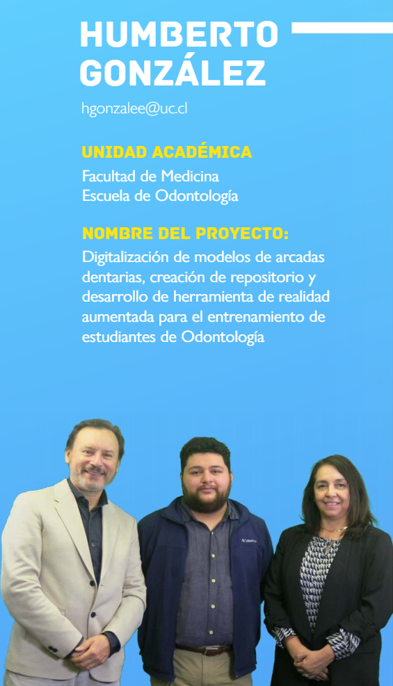 Durante el año 2023, Humberto González, docente de la Escuela de Odontología, lideró la coordinación y gestión de un innovador proyecto Fondedoc. La iniciativa surgió en respuesta a una necesidad detectada entre los estudiantes, quienes manifestaron requerir mayores oportunidades de práctica durante su formación. Las principales dificultades identificadas incluyeron la limitación del tiempo disponible para tutorías, la escasa integración entre áreas formativas, la baja disponibilidad de pacientes para prácticas clínicas y una alta carga en la relación docente-alumno.