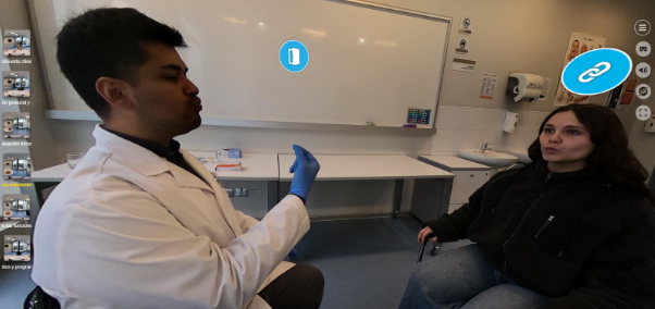 En el marco del proyecto 2024, la propuesta se profundizó mediante la creación de cápsulas audiovisuales insertas en recorridos 360° interactivos. Estos recursos inmersivos permiten al estudiantado explorar entornos clínicos simulados, acceder a contenidos clave sobre evaluación y diagnóstico miofuncional, y desarrollar habilidades de observación clínica en un formato activo y contextualizado. Las cápsulas fueron diseñadas con un enfoque pedagógico que articula teoría y práctica, facilitando el razonamiento clínico desde una experiencia cercana a la realidad profesional.
